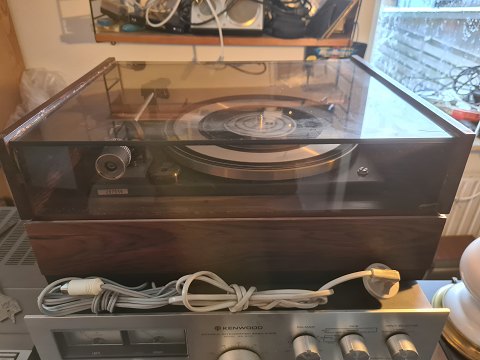 Pladespiller fra Dual model 1218 fra slut 1960- start 1970'erne. Her i palisander kabinet. Testet og kører som den skal. Fremstår original kun med lettere brugsspor. Tonearm monteret med Shure pick-up model M75EM Type 2.