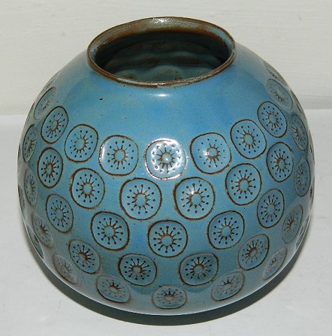 Stempel-dekoreret vase i keramik af Jens Harald Quistgaard IHQ. Fremstår i god stand. Fabriksmærket på bunden. 11 cm høj