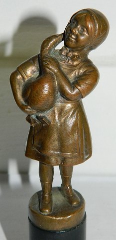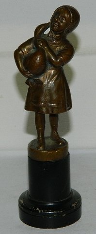 Bronzefigur af pige med gås. Formgivet af billedhuggeren Svend Lindhardt i 1940´erne. I perfekt stand. Signeret med SL på bagsiden af bronzesoklen. Højde: 10½ cm. Incl. sokkel af træ 15 cm.