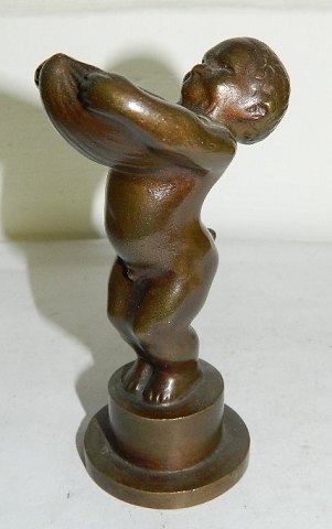 Figur i bronze af Jens Jacob Bregnø. Fremstillet ca. 1940. Putti med skål af muslingeskal. Signeret JJB BRDR. GRAGE BRONCESTØBERI. I perfekt stand. 11 cm høj