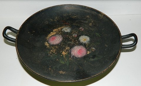 Kylix eller græsk skål fra Peter Ipsen, København. Produceret omkring 1880. Dekoreret i bunden med roser. I god stand uden skader eller reparationer. Dekorationen med brugsslid. Fabriksstemplet på bunden. 6 cm høj og 20 cm i diameter. Fra øre til øre 26 cm.