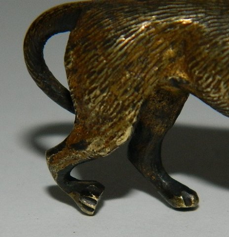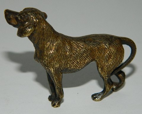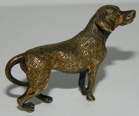 Figur i bronze af hund fra Østrig såkaldt: Wiener-bronze. Ingen skader. Højre bagben let bukket. 3½ cm høj og 5 cm lang.
