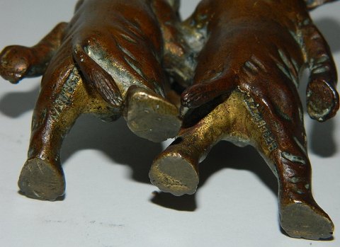 Wiener-bronce ca. 1900: Figur i bronze af par elefanter. På bagsiden stemplet på tysk: MØNSTERBESKYTTET. I god stand. 7½ cm høj
