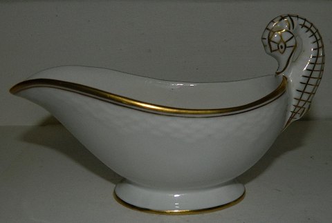 Smørnæb i "Hartmann" - hvid med guldkant - fra Bing & Grøndahl model nr. 12. Fremstår i perfekt stand. 1. sortering. Fabriksmærket på bunden. 8½ cm høj og 14 cm lang.