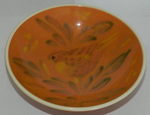 Unika skål på fod i fajance fra Aluminia. Udført af Nils Thorsson (1898-1975). Dekoreret med fugl i bunden af skålen. Fremstår i perfekt stand. 1. sortering. Signeret af kunstneren på undersiden under fabriksmærket. 6 cm høj og 18 cm i diameter.