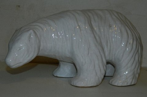 Isbjørn i keramik fra den bornholmske keramikfabrik Johgus, der eksisterede på Bornholm i perioden 1944-1999. Figuren er i perfekt stand. Fabriksmærket under det ene ben.