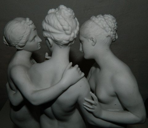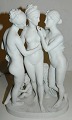 Figur fra Bing & Grøndahl i bisquit . Udført mellem 1854 og 1900. Bertel Thorvaldsen (1770-1844) skabte originalen i Rom 1817-18. Denne figur bærer titlen: "Gratierne og Amor spillende på lyre". Kopi af O. H. B. Olrik i 1854 for Bing & Grøndahl. Figuren af Amor, siddende på soklen, har knækket nogle fingre på venstre hånd ligesom højre vinge er knækket af og ligeledes bortkommet. Skår på undersiden af soklen. Indstemplet fabriksmærket B&G på bagsiden af soklen. Figuren er 33½ cm høj.