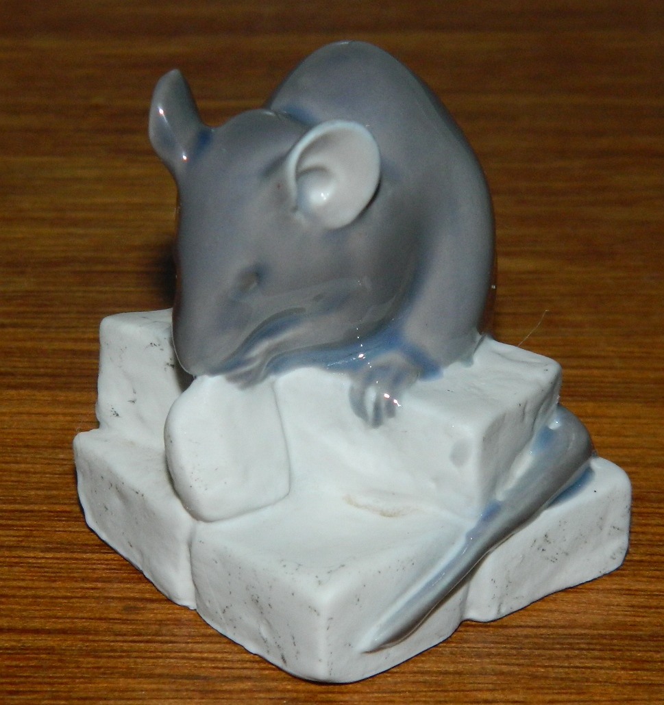 Figur af mus i porcelæn fra Royal Copenhagen. 2. sortering. Modelnummer 510. Fremstår i god stand uden skader eller reparationer. Fabriksmærket på bunden. 4 cm høj.
