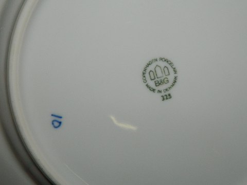 Middagstallerken i musselmalet porcelæn fra Bing og Grøndahl. Modelnummer 10. Fremstår i god stand uden skader eller reparationer. 2. sortering. Fabriksmærket på bagsiden. 24 cm i diameter. 8 stk. haves (1/11-13) LIGNENDE KØBES