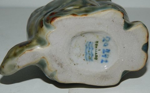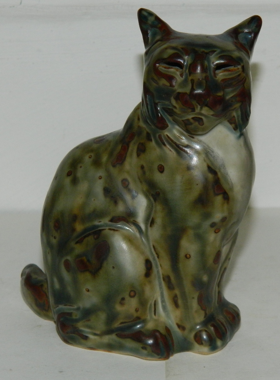 Figur af kat i stentøj. Knud Kyhn for Royal Copenhagen. Modelnummer 20242. Figuren fremstår i perfekt stand. Uden skader eller reparationer. Fabriksmærket på bunden sammen med kunstnersignatur. 11½ cm høj.