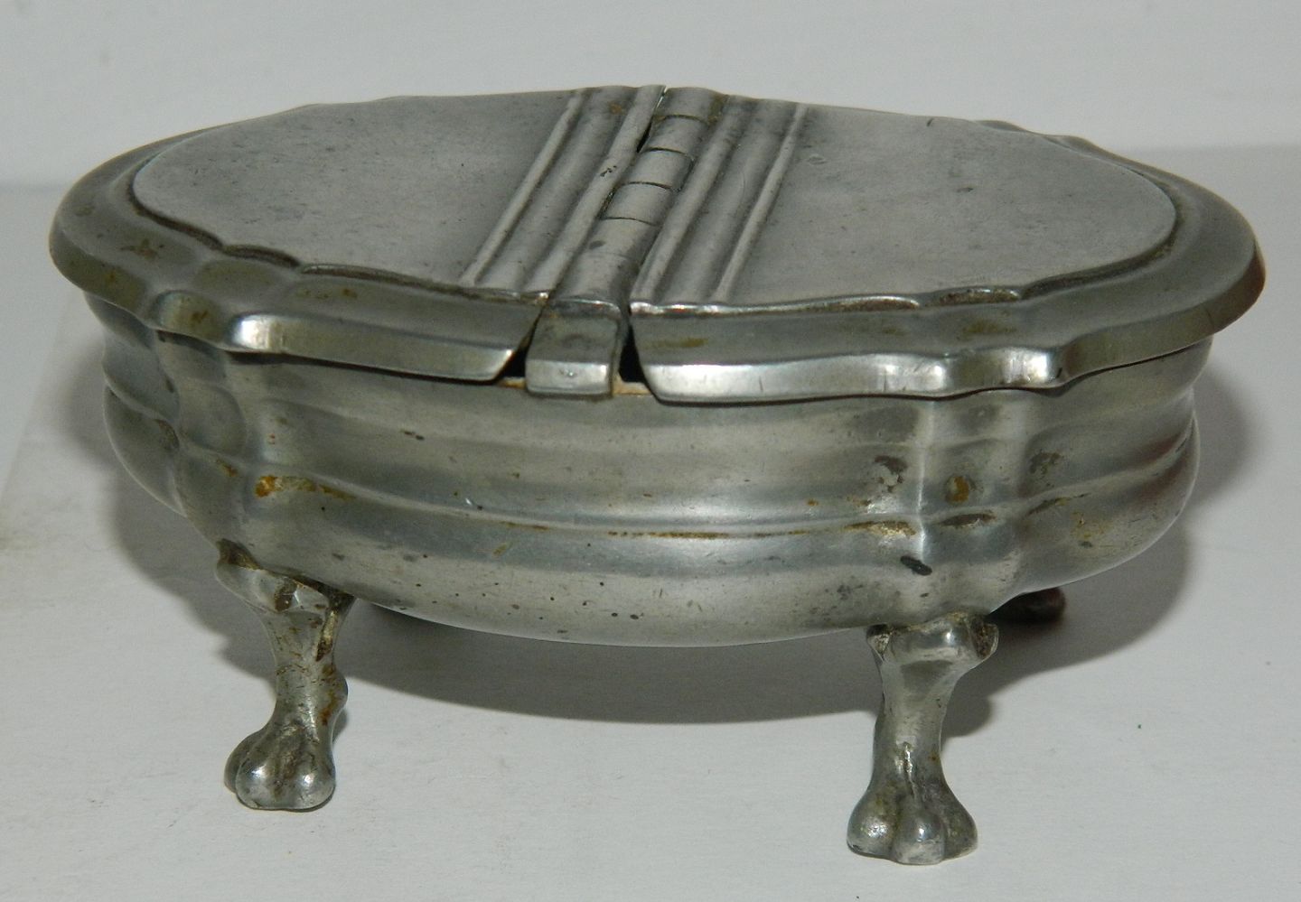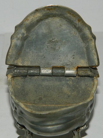 Salt cellar with double lid - stands on four feet. Is in good condition with no damage or repairs. Master mark on the inside of the lid. Made around 1850. 4½ cm high and 9½ cm long
