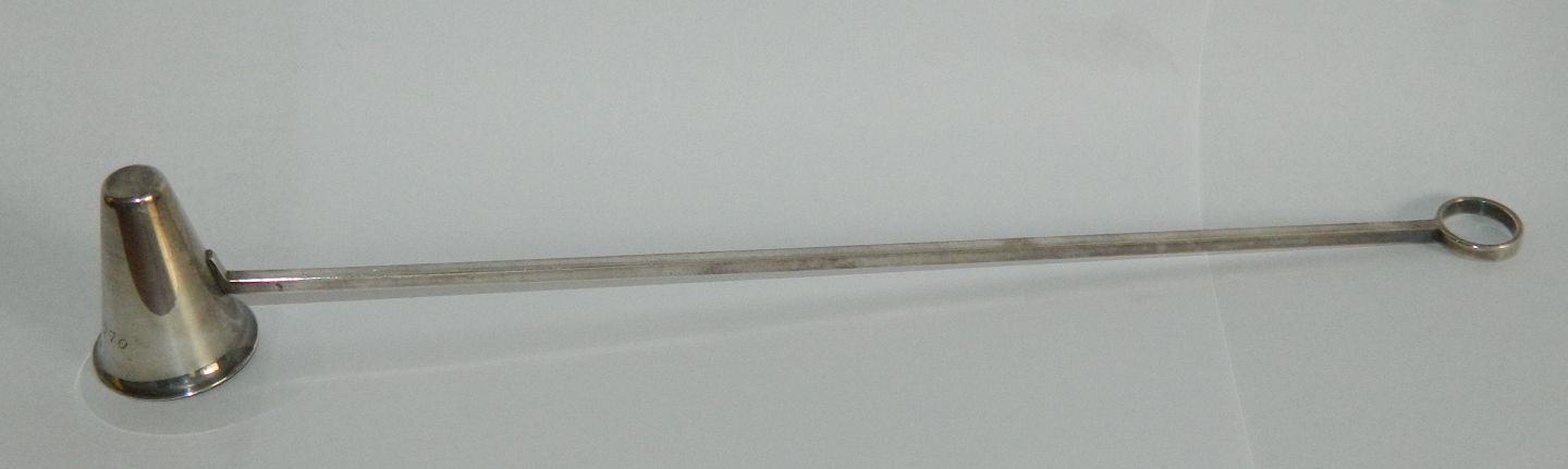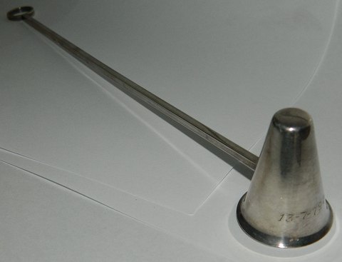 Lyseslukker i sterling sølv fra Georg Jensen. Fremstår i god stand. Lyshuset er graveret 13-7-1970. Stemplet på holderen. 27 cm lang.
