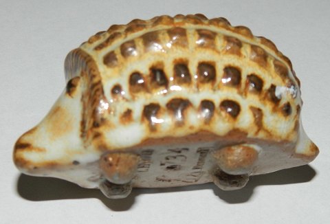 Lille figur af pindsvin fra Lauritz Hjorth, Bornholm. Fremstår i perfekt stand uden skader eller reparationer. Fabriksmærket på bunden. 3½ cm høj 6 cm lang.