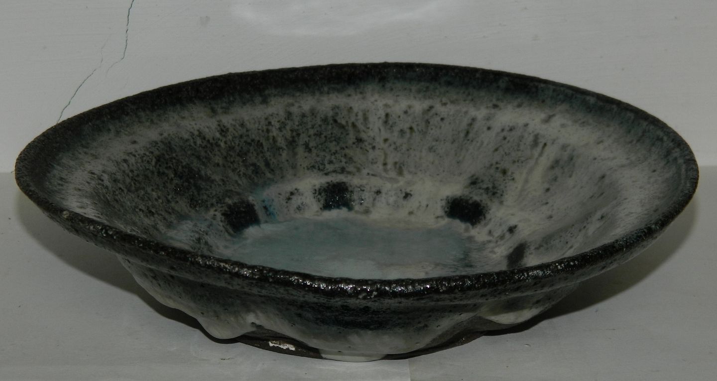Glaseret fad i keramik af Gutte Eriksen (1918-2008). Fremstår i perfekt stand. Stempel signatur på undersiden. 5 cm høj og 21½ cm i diameter.