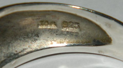 Sterling sølvring med blå sten. Guld omkring stenen. Stemplet JAa 925.