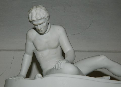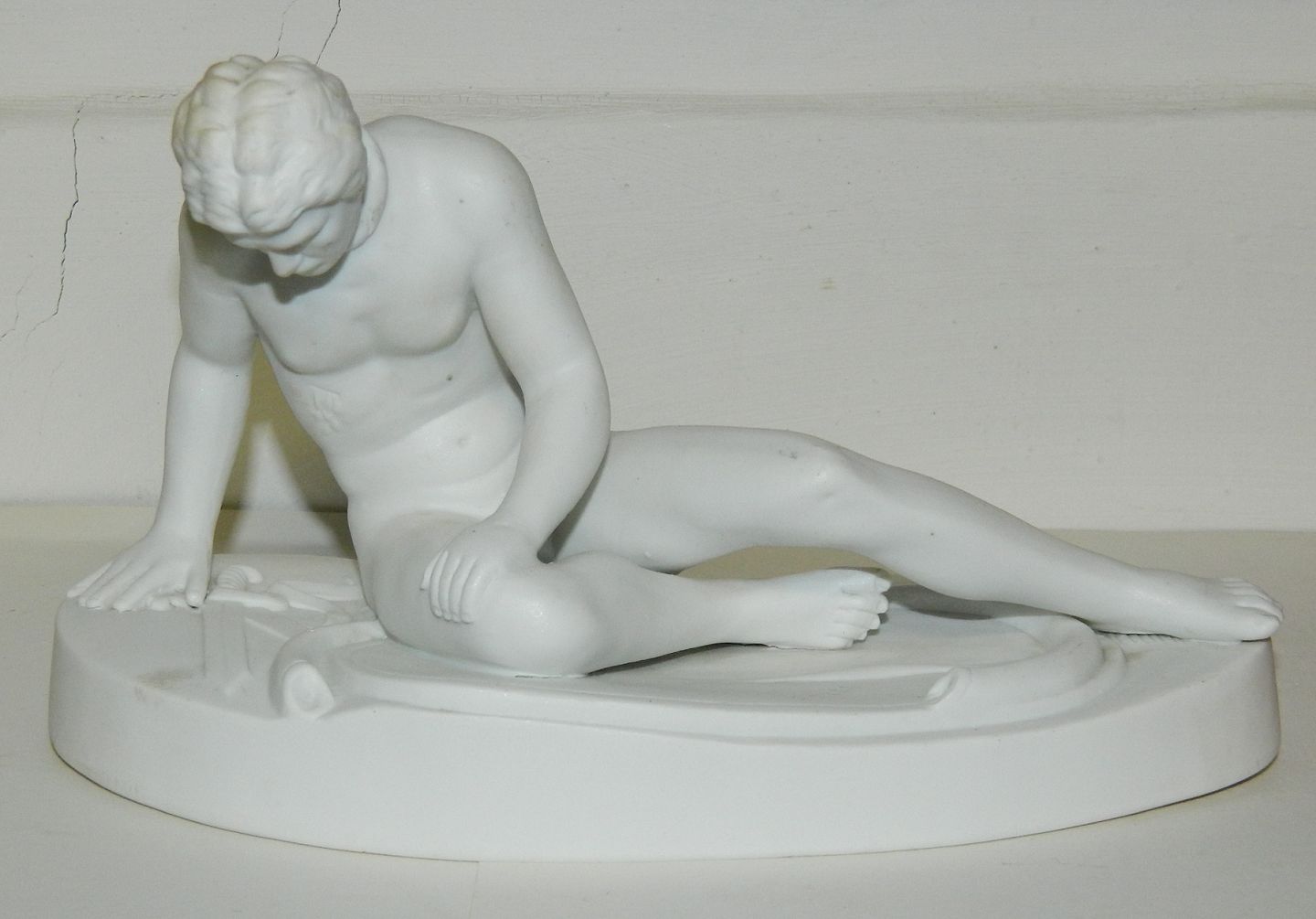 Figur i bisquit af døende Galler. Fremstår i god stand uden skader eller reparationer. Ingen fabriksmærke. Fremstillet ca, 1920. 12 cm høj og basen er 20½ cm lang.