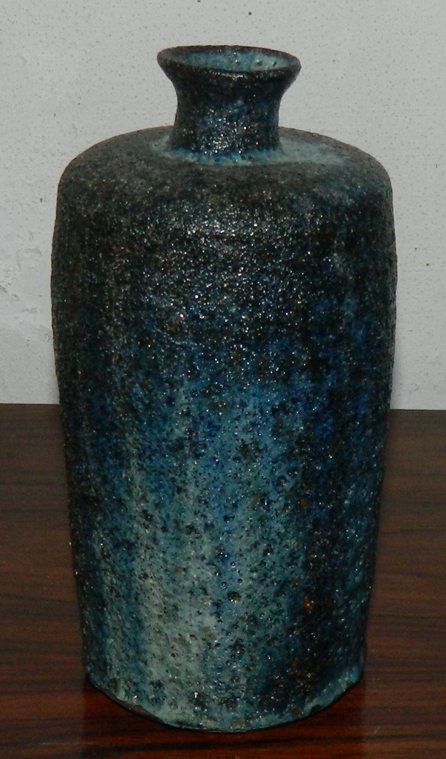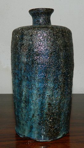 Glaseret flaskeformet vase af Gutte Eriksen(1918-2008). Fremstillet på hendes eget værksted. Fremstår i perfekt stand. Stempelsignatur på bunden. 16 cm høj.