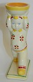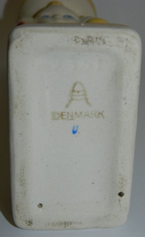 Figur fra Aluminia fabrikken forestillende nisse med grødskål på hovedet. Fremstår i god stand uden skader eller reparationer. Fabriksmærket på bunden. 14-14½ cm høj