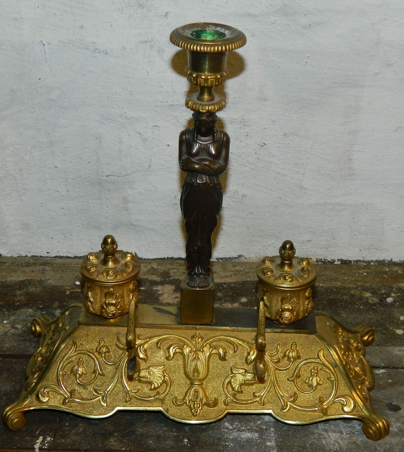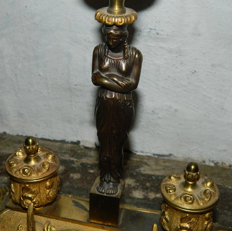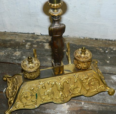 Blækhus med lysestage i bronze fra 19.århundrede