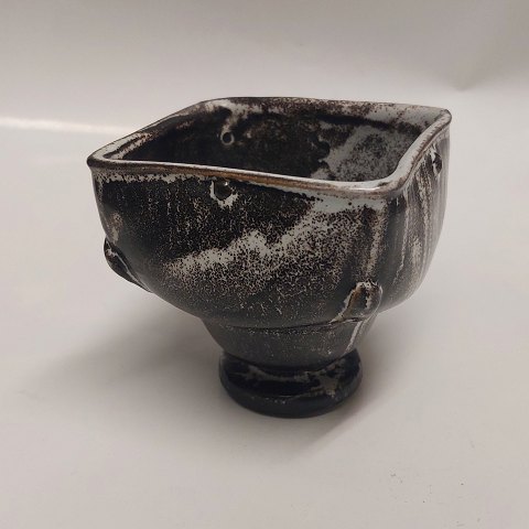 Figur af bemalet giraf fra Lauritz Hjorth, Rønne, Bornholm. Fabriksmærket på undersiden med L. Hjorth, Danmark. To mindre skår/"nålestik" på undersiden hvor stemplet ses - "kl. 10.30" og "kl. 12.30" På undersiden uden stempel ses mindre revne "kl. 15.00". 9 cm høj