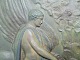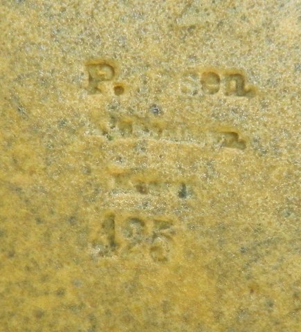 Basrelief i keramik fra P. Ipsen, Kjøbenhavn, 1894. "Pegasus og Bellerophontes". Relief udført af Bertel Thorvaldsen i 1804 i Rom. Her gengivet i relief / platte i keramik dækket af grøn glasur. Har flere skår hvilket fremgår af foto´s. Der er yderligere et par meget små skår som ikke fremgår af foto´s. Yderst sjælden platte fra Ipsen fabrikken ! Fabriksmærket på bagsiden med P. Ipsen, ENERET, Kjøbenhavn samt modelnummer 425. Mål: 36½ cm x 25½ cm.