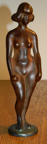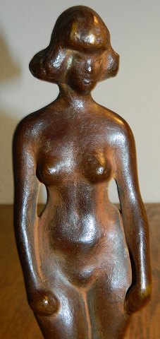 Figur af stående nøgen kvinde udført i bronce af den danske billedhugger Carl Vilhelm Nielsen (1890 - 1961) Unika arbejde. Fremstår i perfekt stand. 22½ cm høj Stemplet.: C.V.N. Fremstillet omkring 1930.