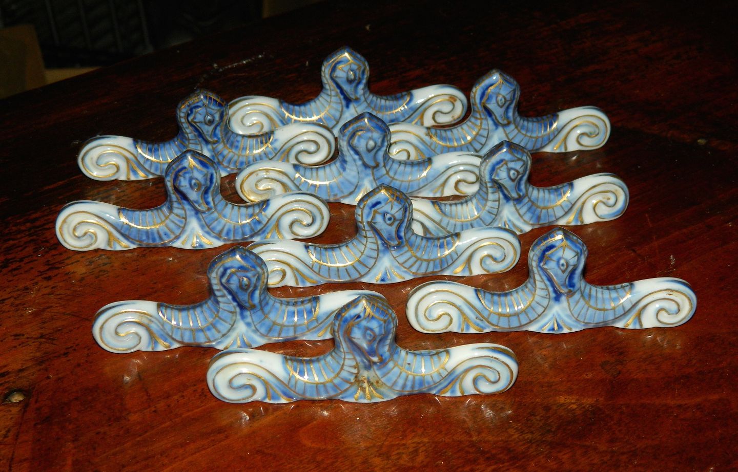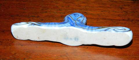 Knivstole fra Mågestellet i porcelæn fra Bing & Grøndahl. Fremstår i god stand. Ingen skader. Svage fabriksstempler B&G i blåt. 3,5 cm høje og 9 cm lange.