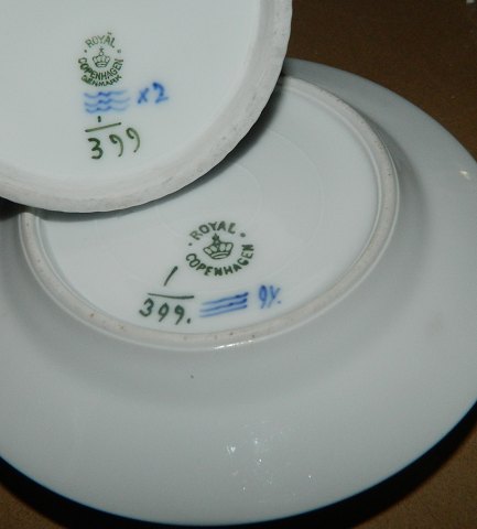 Smørskål med fast underdel og låg i riflet musselmalet porcelæn fra Royal Copenhagen modelnr. 1/399. Fremstår i god stand uden skader eller reparationer. 1. sortering. Begge dele fabriksmærkede. 8 cm høj.