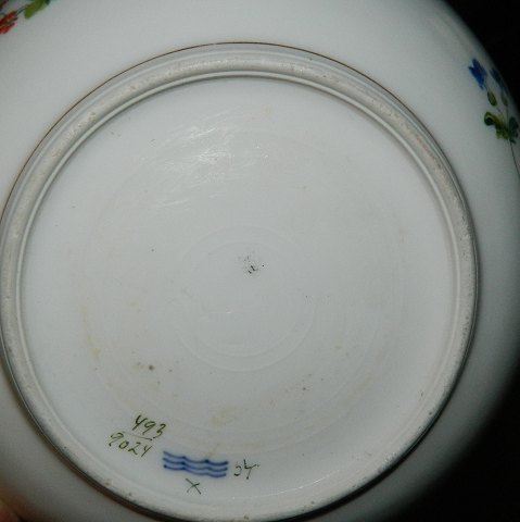 Skål i porcelæn fra Royal Copenhagen i Saxisk Blomst. 2. sortering. Fremstår i god stand. Har dog lidt lidt på guldet på kanten. Mål: 6 cm høj og diameter på 21 cm.