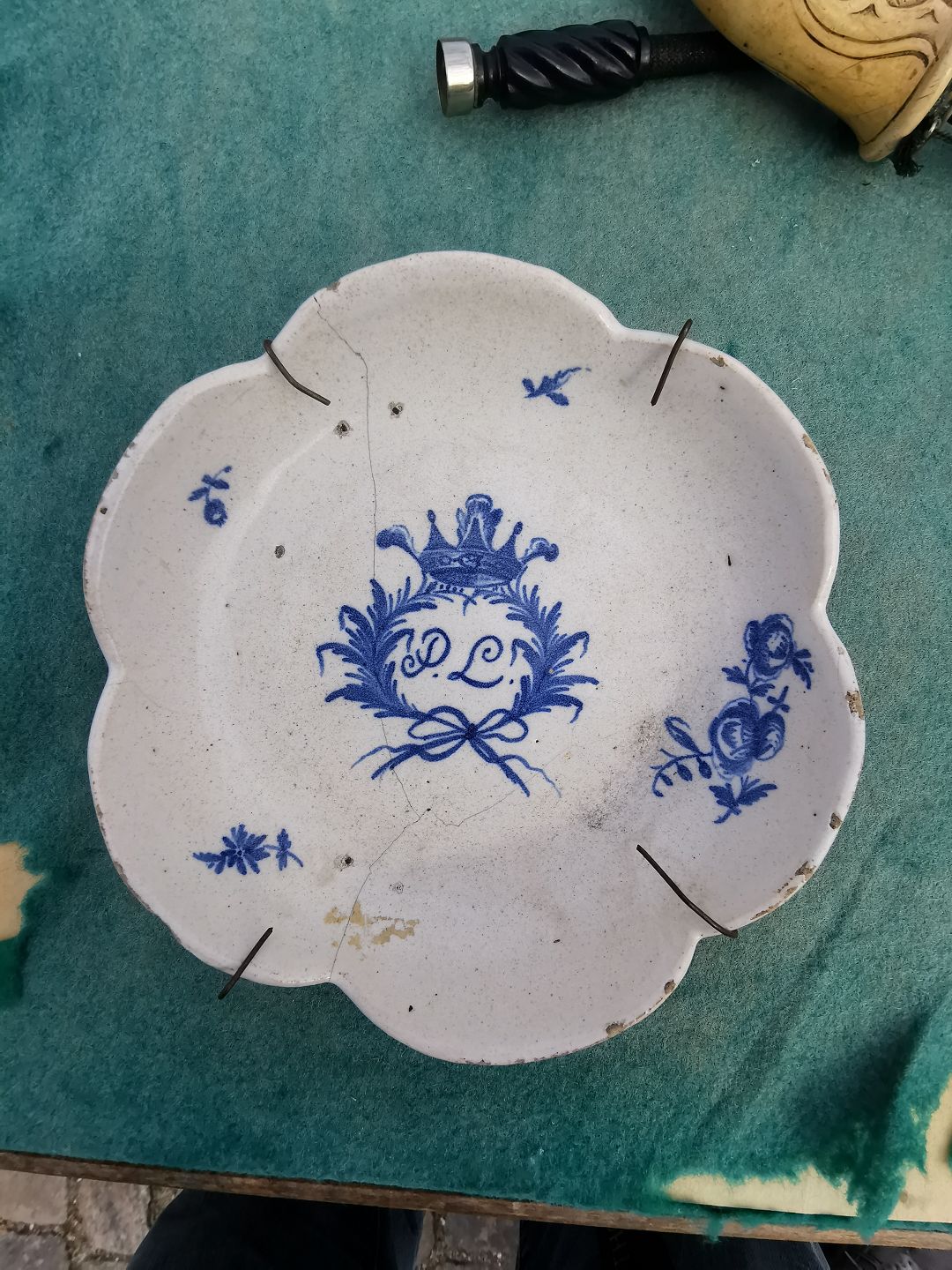 Skål i keramik. 18. Århundrede. Dekoreret med Royal monogram. Klinket.