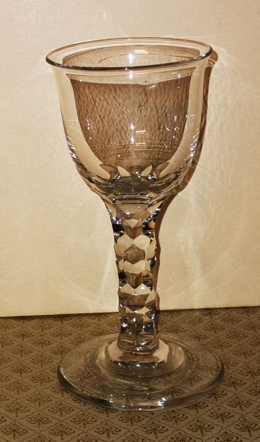 Smukt vinglas med facetteret stilk. Fremstillet i første halvdel af 19. århundrede i mellem-europa. I perfelt stand. Mål: H. 13½ cm