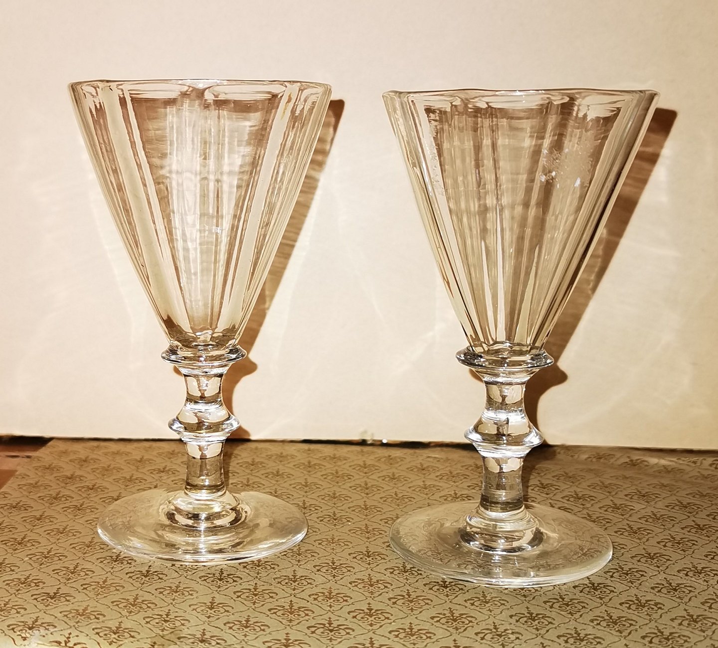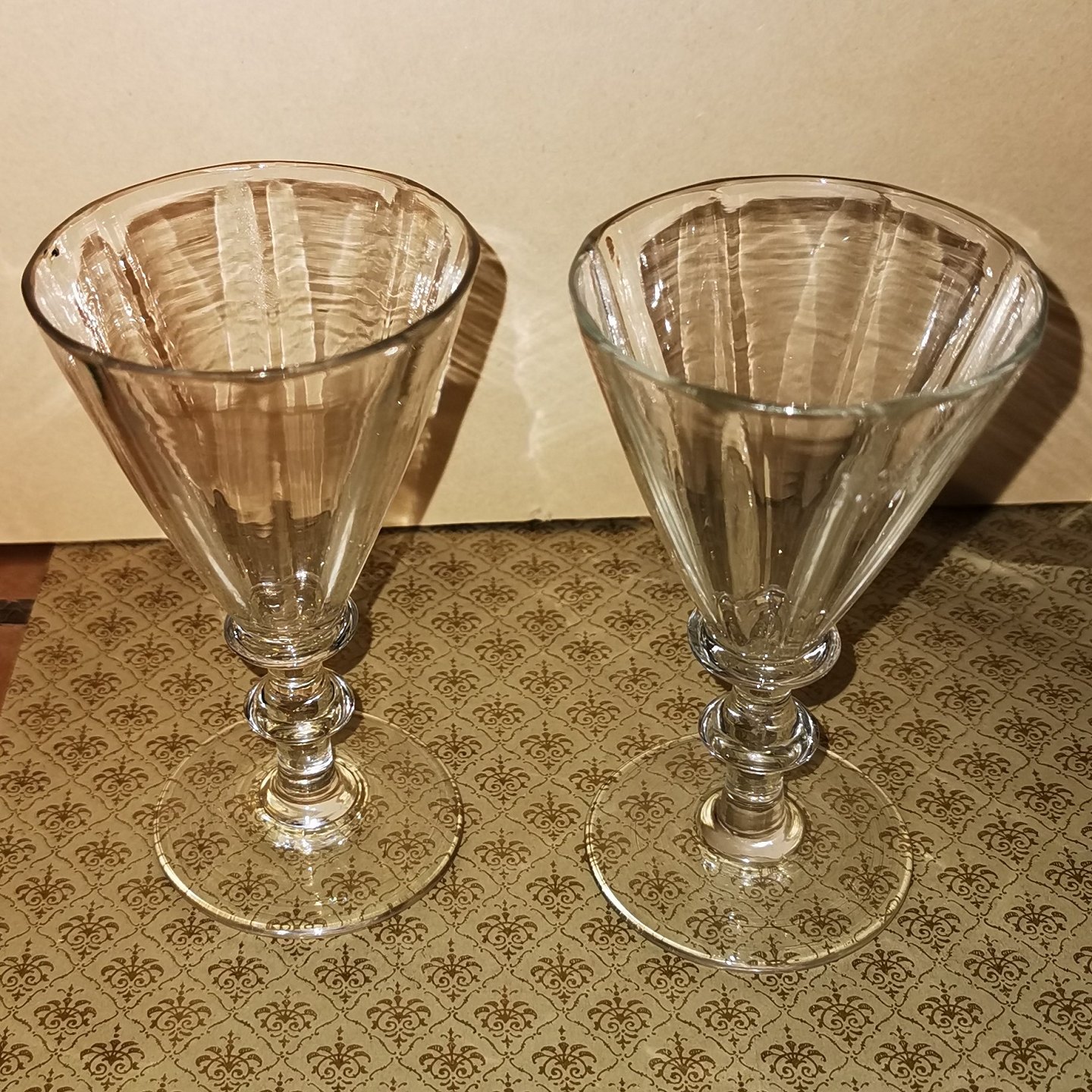 Par snerleglas vinglas fra Holmegaard Glasværk fra ca. 1900. Begge i god stand. Ingen skader eller reparationer. H. 11 cm