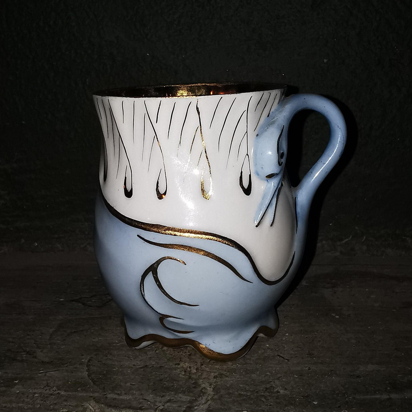 Art Nouveau "Svane-kop" fra Bing & Grøndahl in porcelain fra slutningen af 19. århundrede. Hanken udgør svanens hoved og hals ! I perfekt stand uden skader eller reparationer. Fabriksmærket med B&G i blåt på undersiden. H. 8½ cm