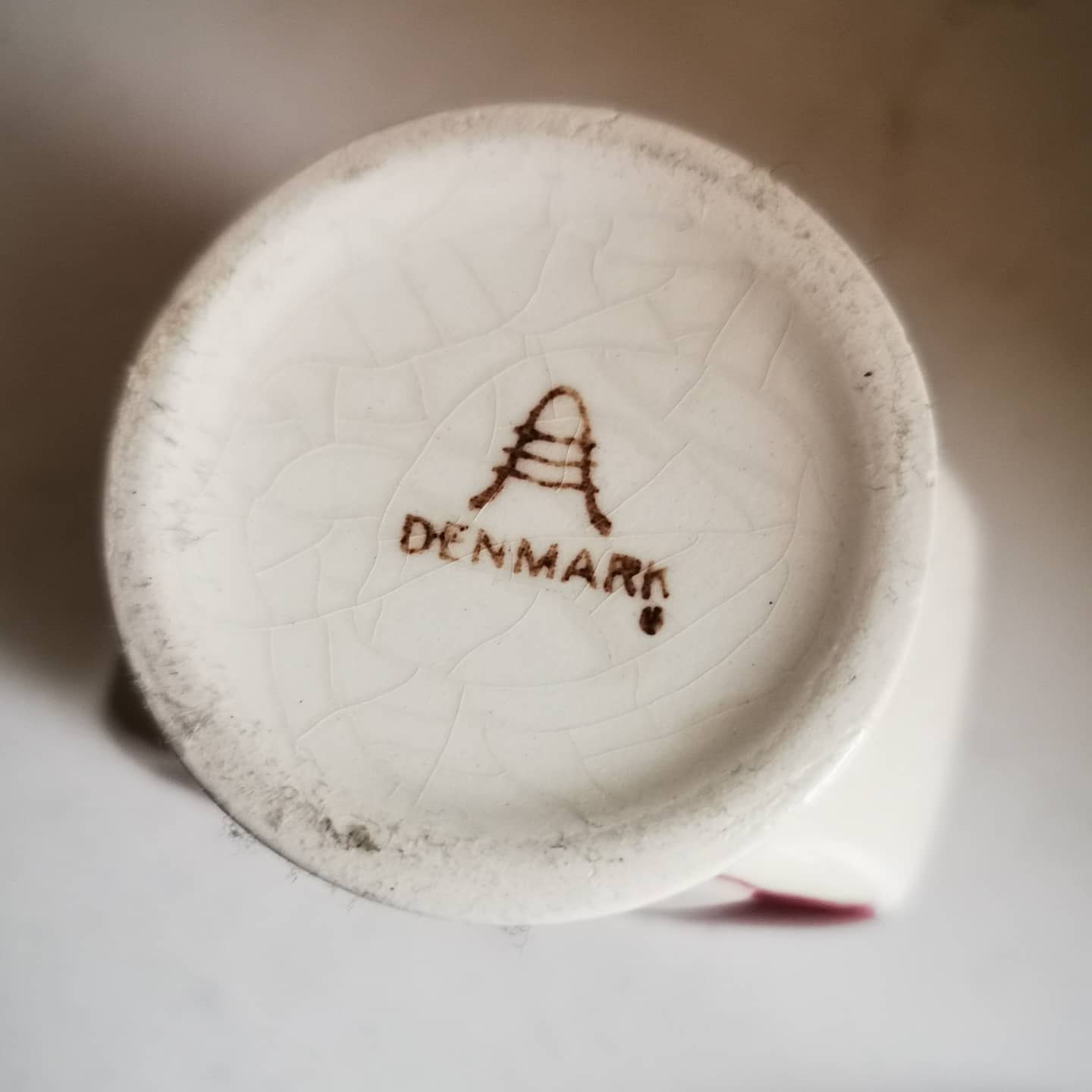 Rødt Aluminia hjerte i fajance. Ingen skader eller Reparationer. Fabriksmærket på bunden