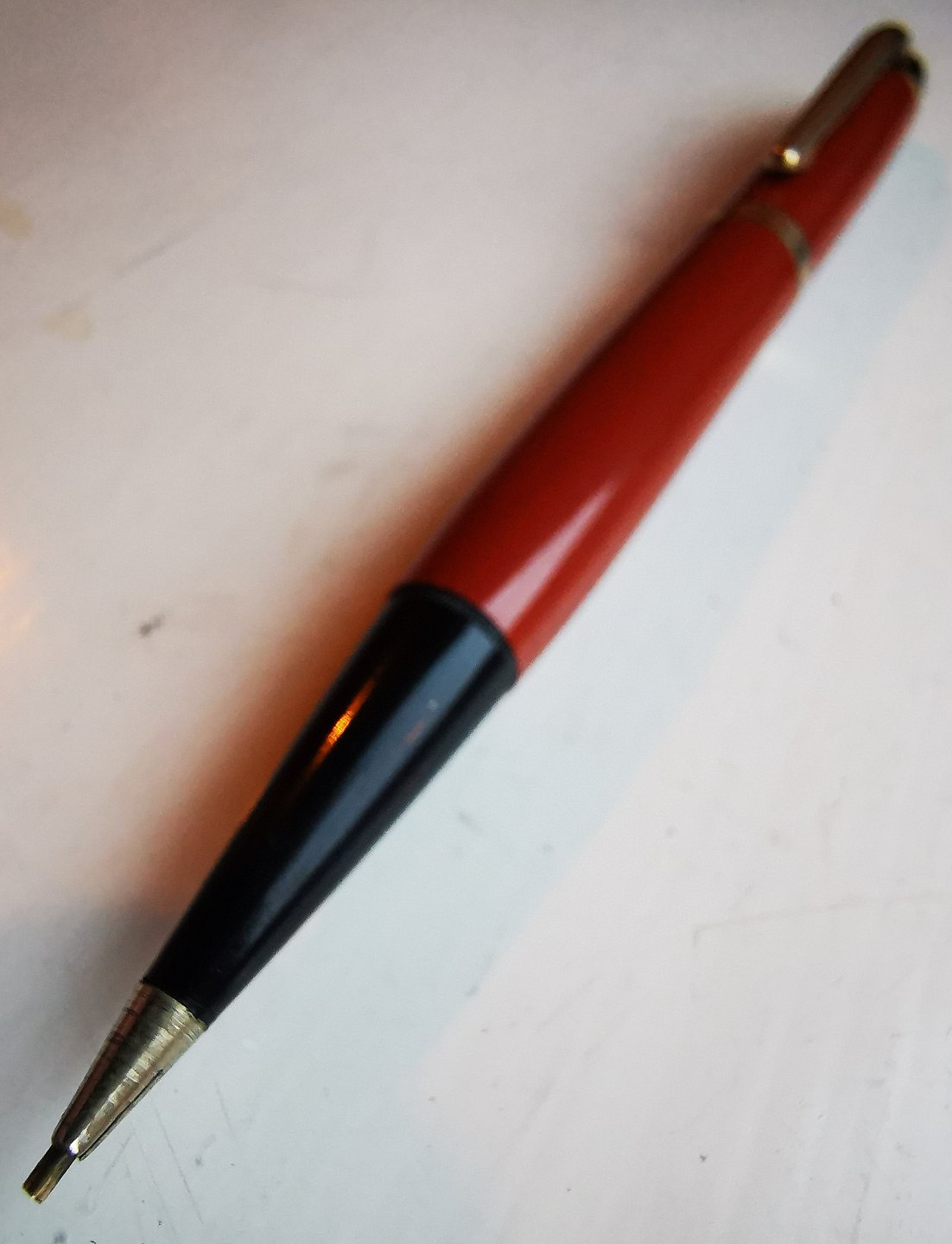 Koralrød Montblanc 15K pencil fra 1950´erne. Fremstår i god stand uden skader eller reparationer. Klar til at blive brugt. Mål: 12½-13 cm lang.