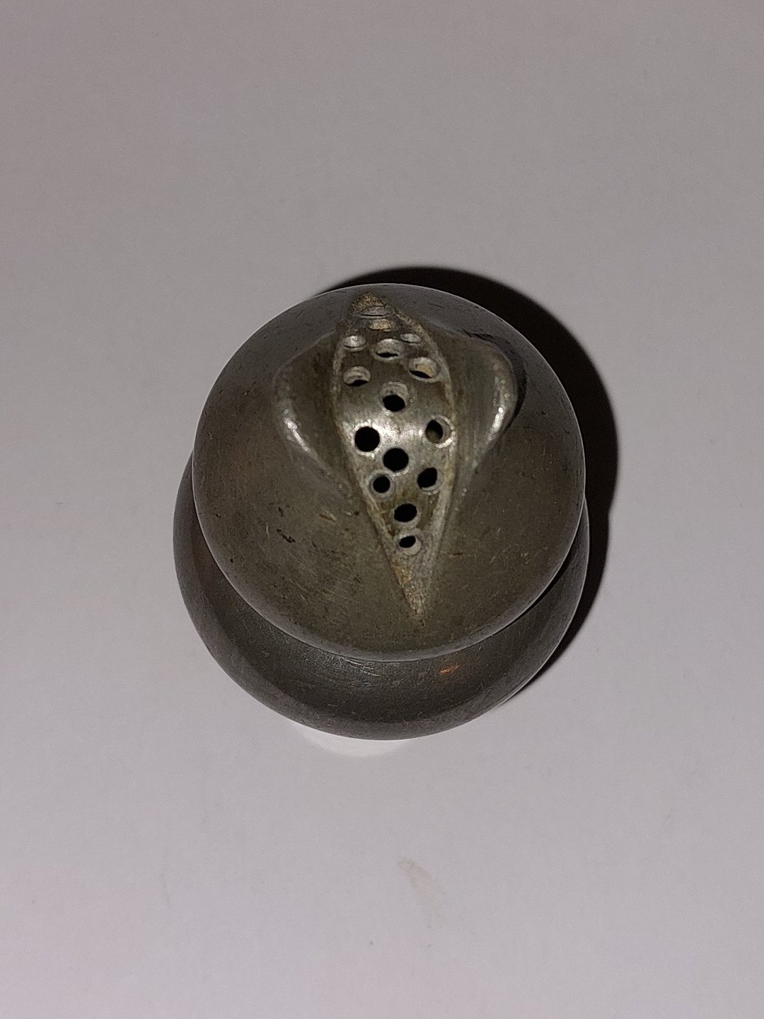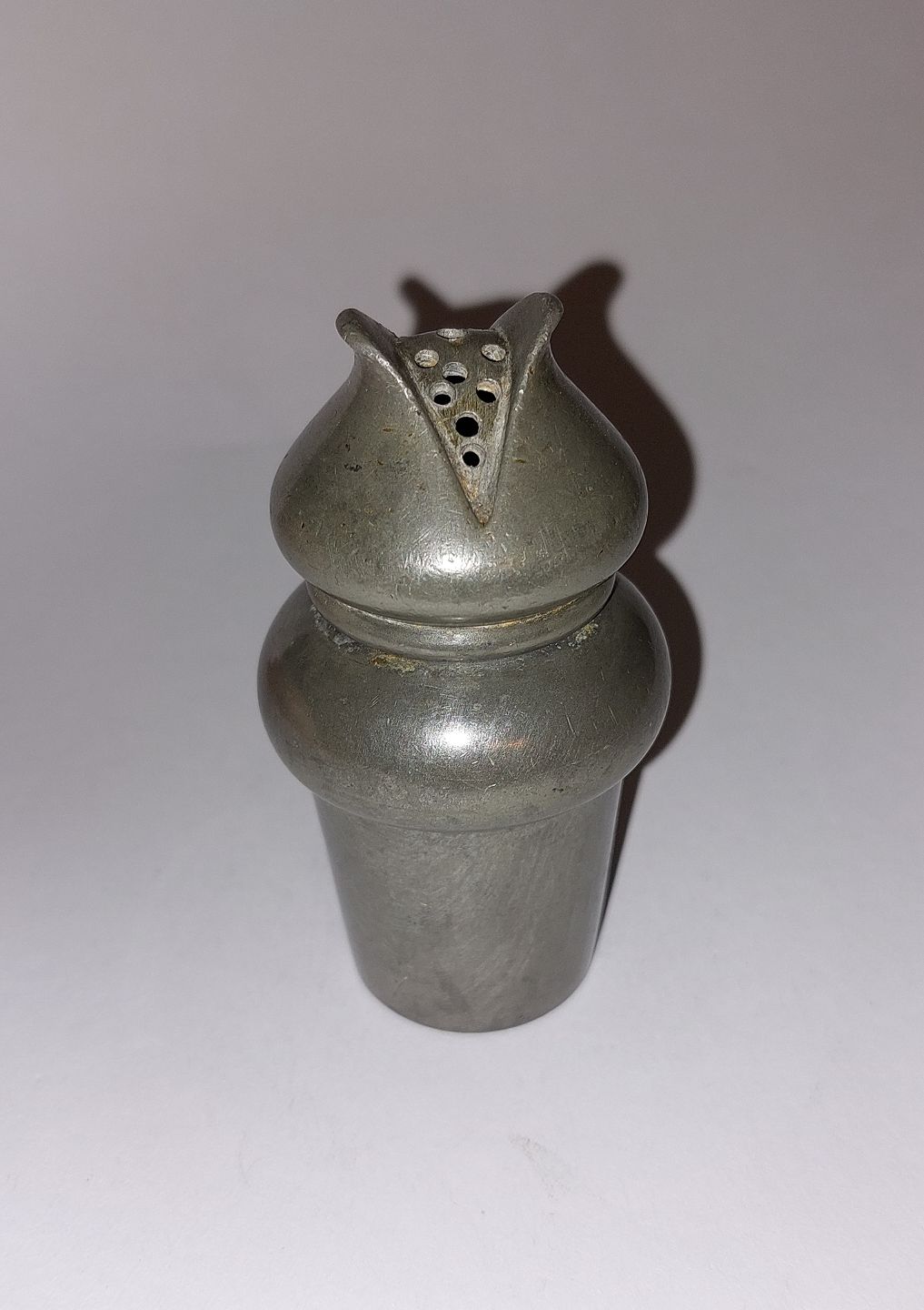 Strøbøsse i tin i Skønvirkestil. Fremstillet på Mogens Ballin´s værksted omkring 1900. I god stand uden skader eller reparationer. Stemplet med MB på bunden. H. 8 cm (3.14 inches).