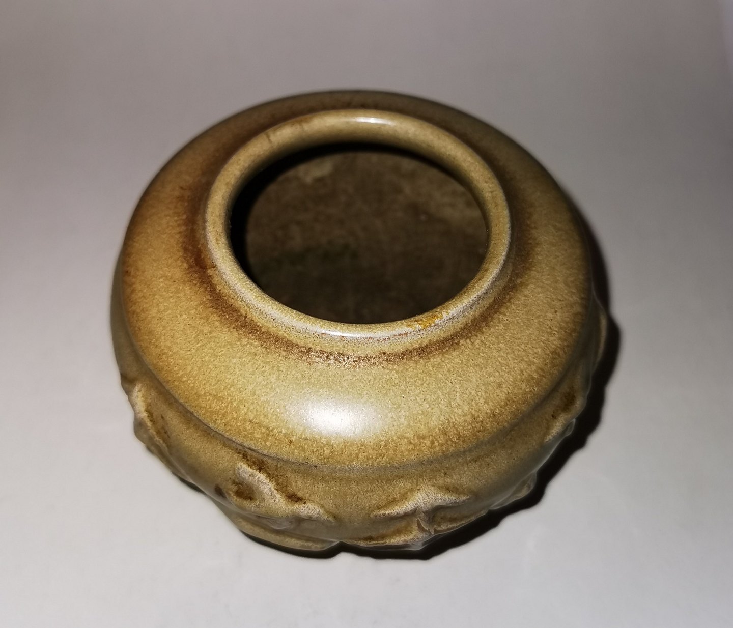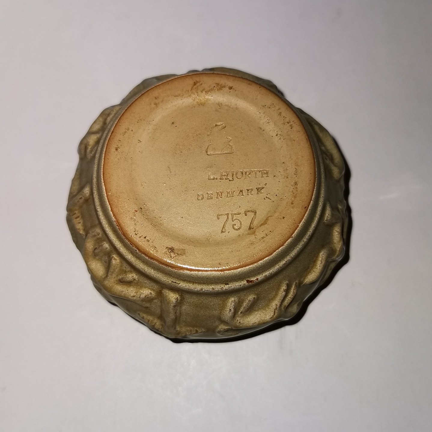 Vase i keramik med dekoration i relief fra L. Hjorth