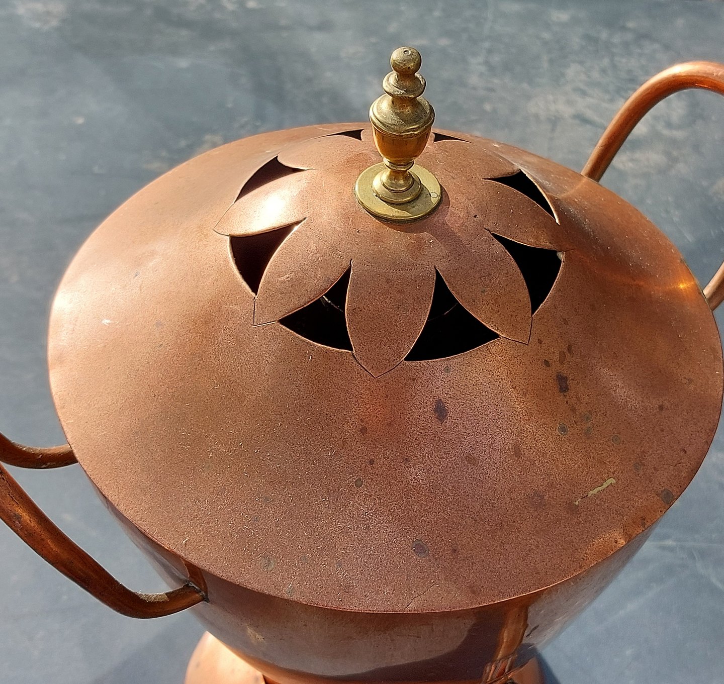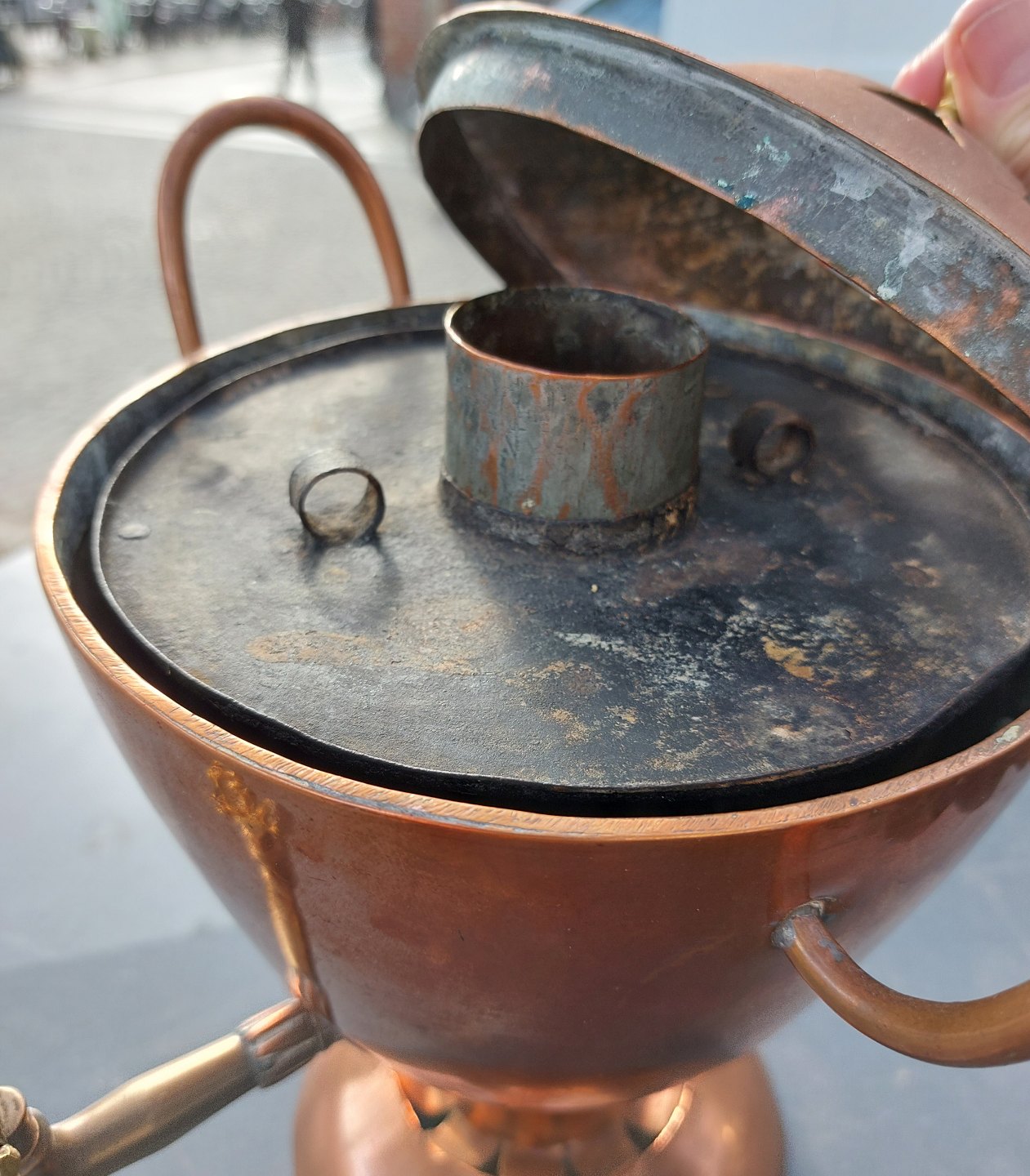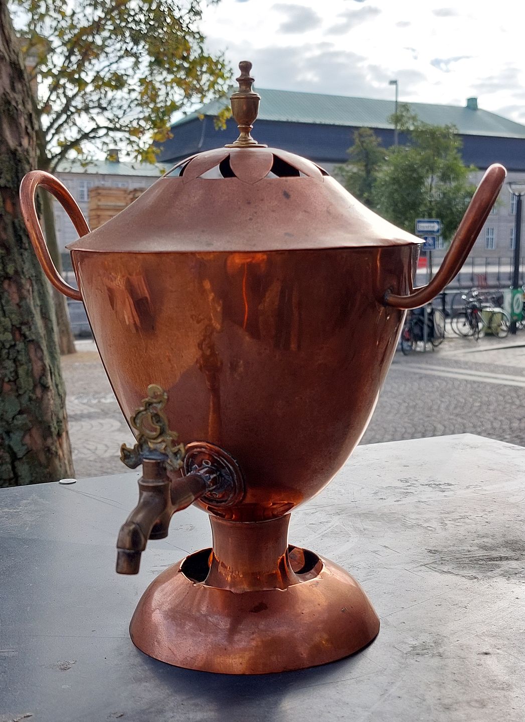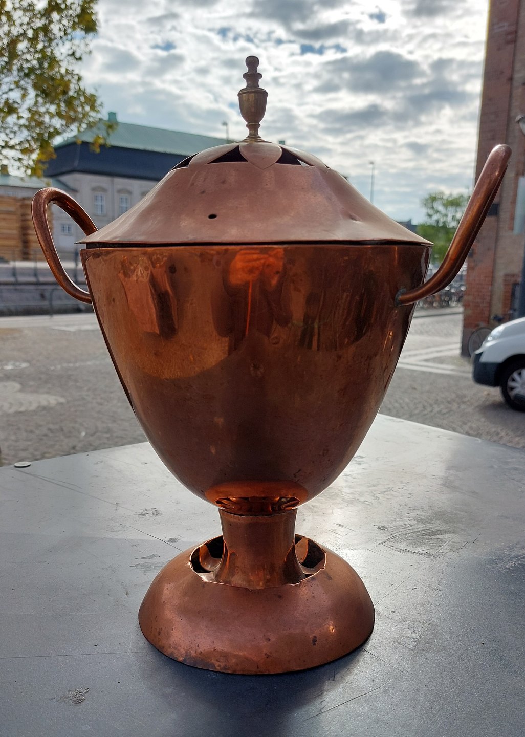 Samvar i købber. Fremstillet i Danmark. Stemplet på bunden 1790. Fremstår med brugs spor hvilket fremgår af fotos