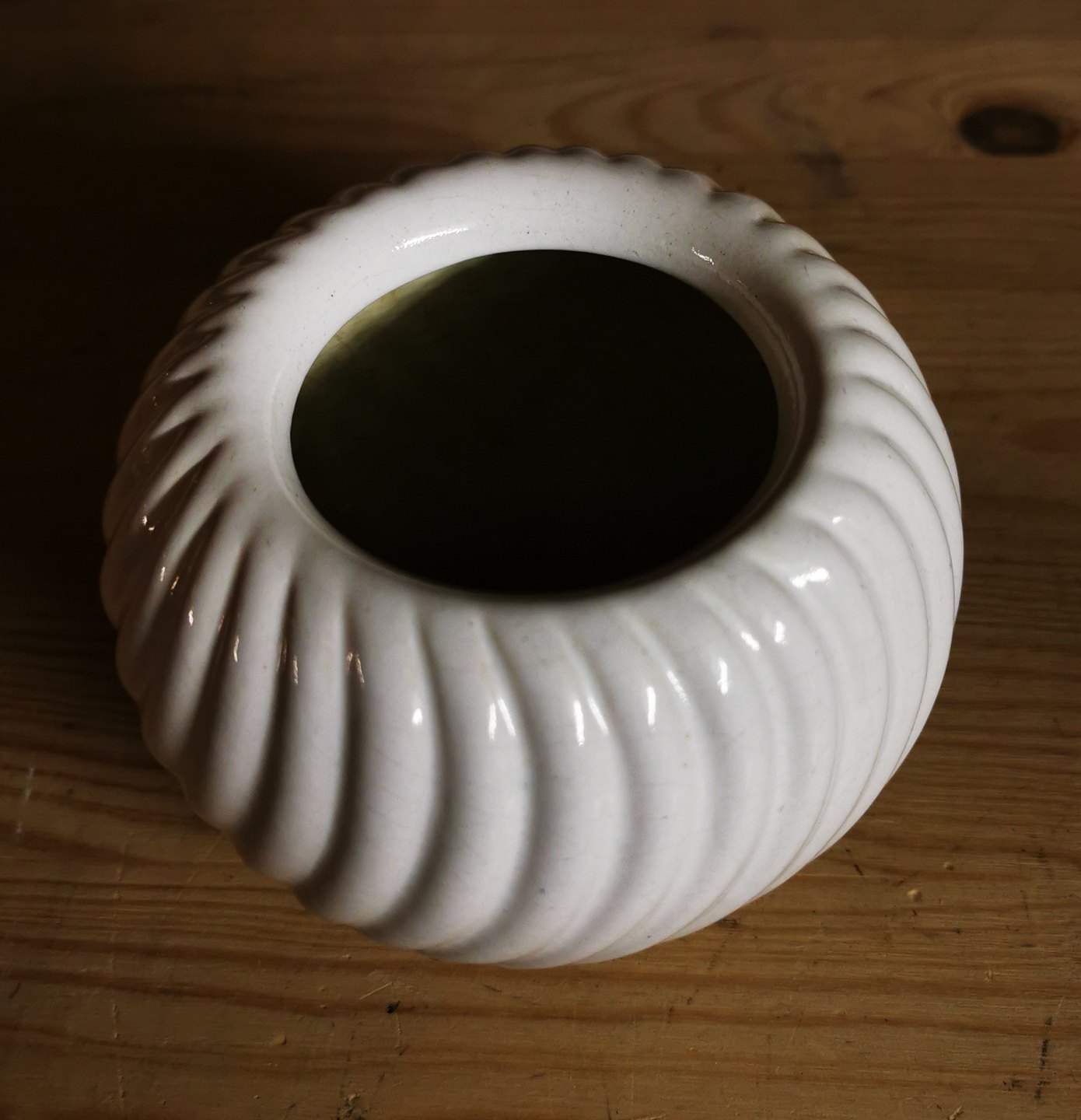 Hvid vase med drejede riller fra Michael Andersen & Søn