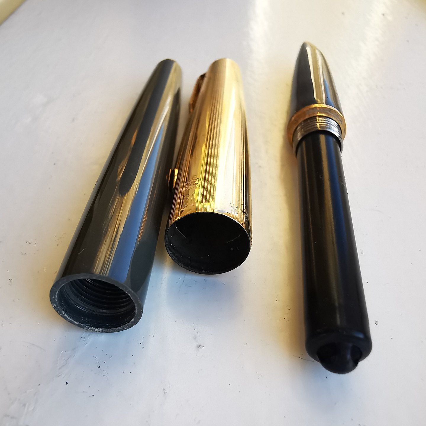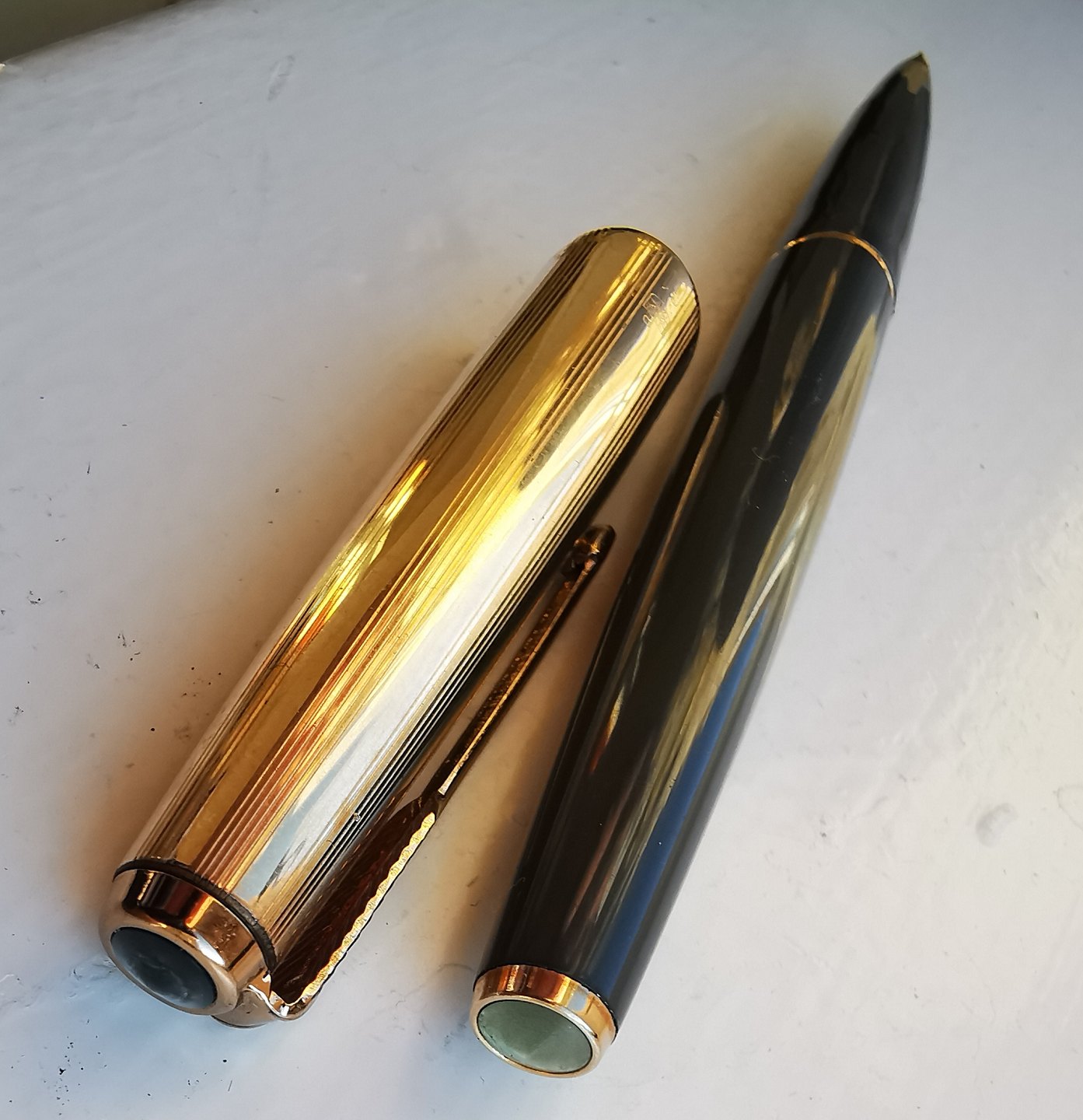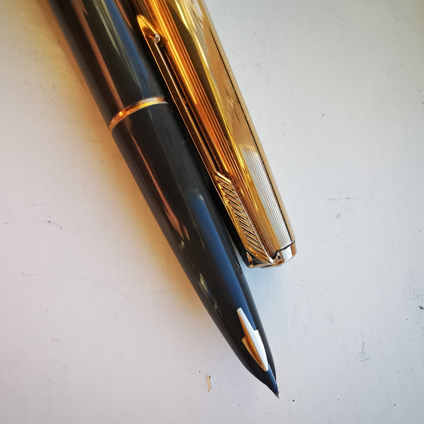 Grå Parker 61 fyldepen med guld double hætte. I god stand. Klar til at blive brugt. L. 13,5 cm
