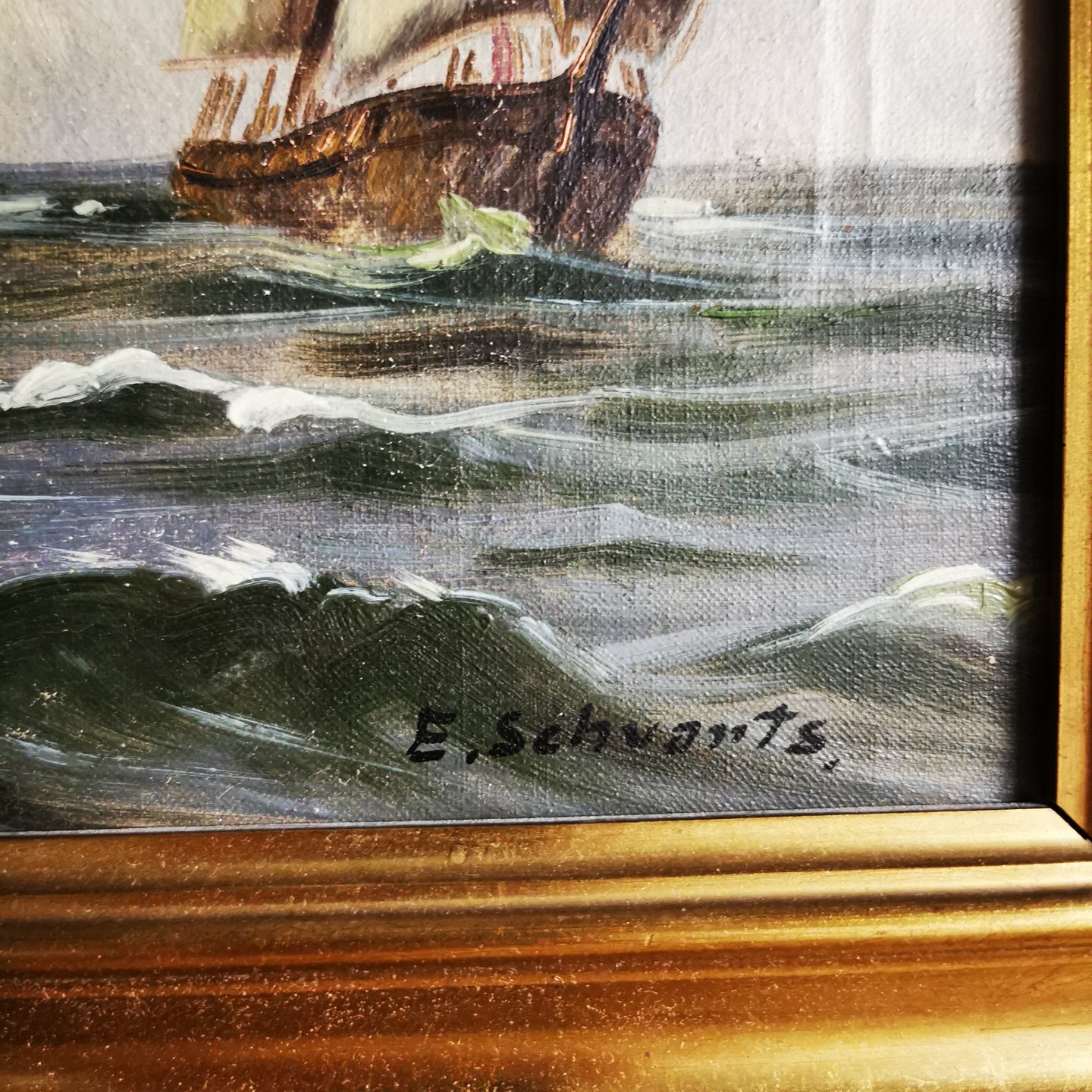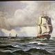 Marine maleri i guldramme. Signeret i nederste højre side. Mål: 27 x 31 cm