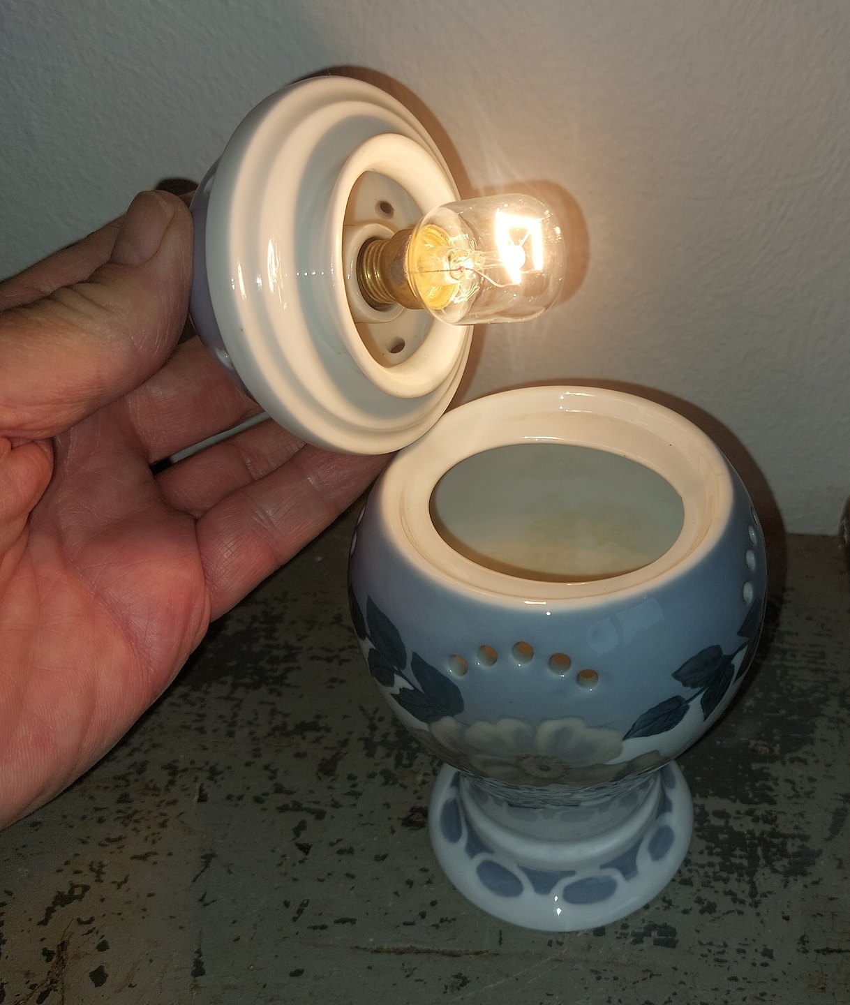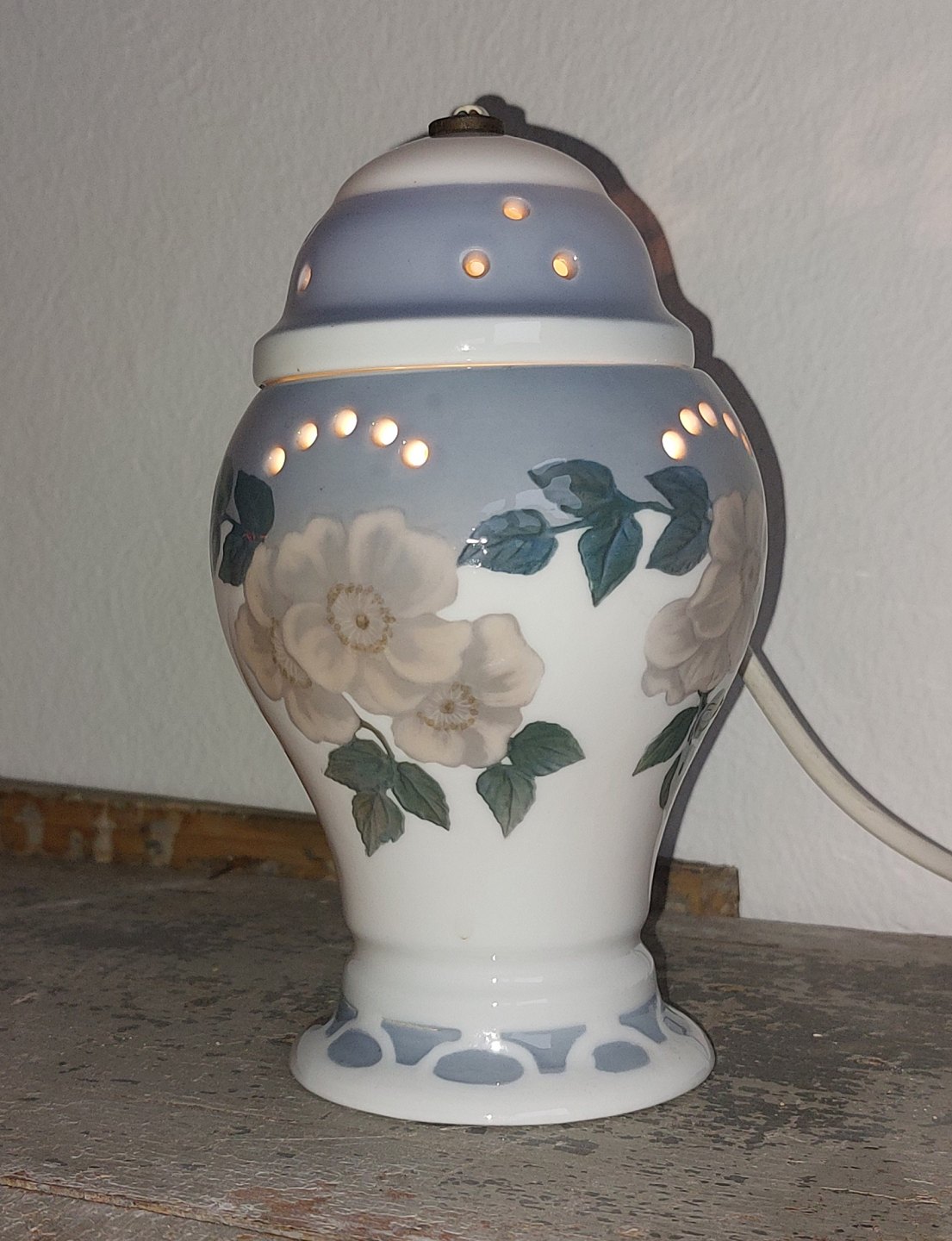 Ozon lampe i porcelæn fra Rosenthal fabrikken i Tyskland. Dekoreret med blomster. Fremstillet omkring 1930. I perfekt funktionel stand. Fabriksmærket på bunden. H. 17,5 cm