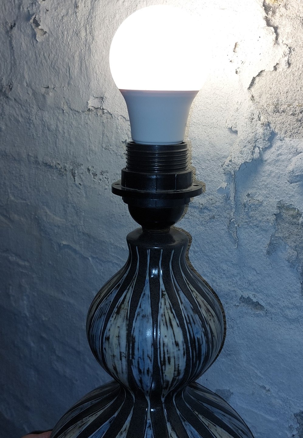Gourd-formet lampe i keramik fra det danske værksted grundlagt af Eva & Johannes Andersen. Fremstår I god funktionsduelig stand uden skader eller reparationer. Mærket på bunden. Hhv. Højde 24,5 og 30 cm