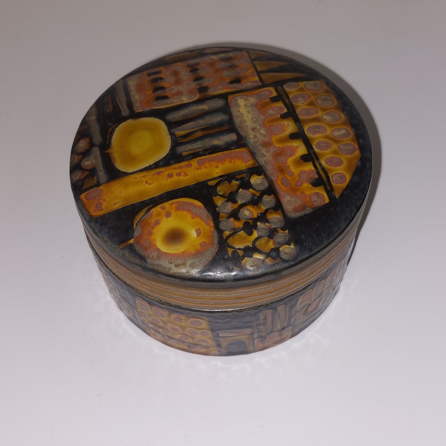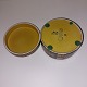 Gul lågskål med abstrakt dekoration I Royal Copenhagen (Baca-serien) fajance designet af Johanne Gerber. 1. Sortering. I perfekt stand uden skader eller reparationer. Fabriksmærket på bunden sammen med modelnummer 3476. Mål: H. 7,5 cm.Ø. 11 cm