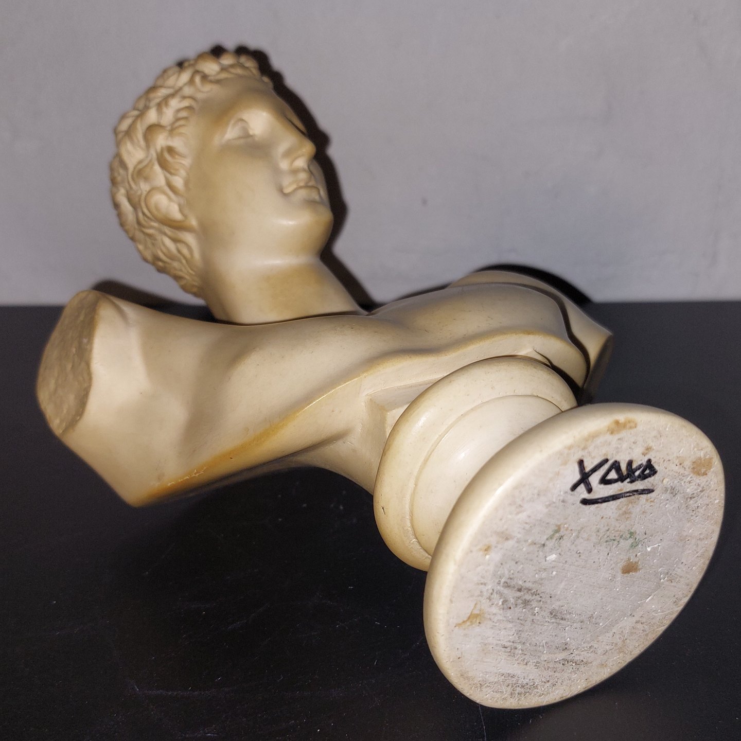 Ældre buste af Hermes. Fremstår I god stand uden skader eller reparationer. Formodes fremstillet omkring 1920. H. 21 cm