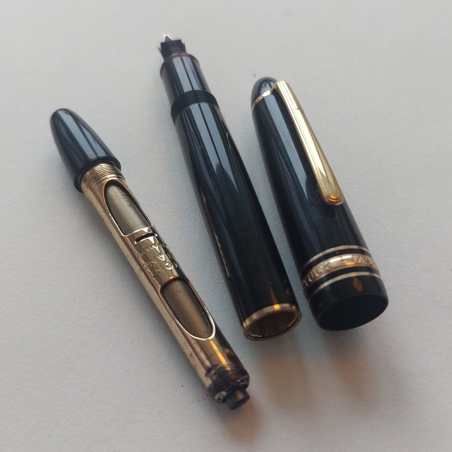 Sort Montblanc Meisterstück Le Grand 146 fyldepen. I god stand uden skader eller reparationer. Klar til at blive brugt, når der bliver indsat ny refil med blæk i. Alle dele originale Montblanc dele fra produktionensperioden. L. 14,5 cm