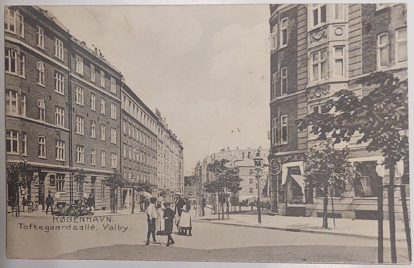 Postkort: Motiv med liv I gaden. Toftegaards Alle I Valby. Annulleret KØBENHAVN I 1910. I god stand