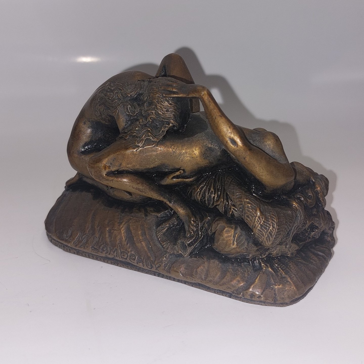 J. M. Lambeaux: Tung erotisk bronze patineret figur af to kvinder