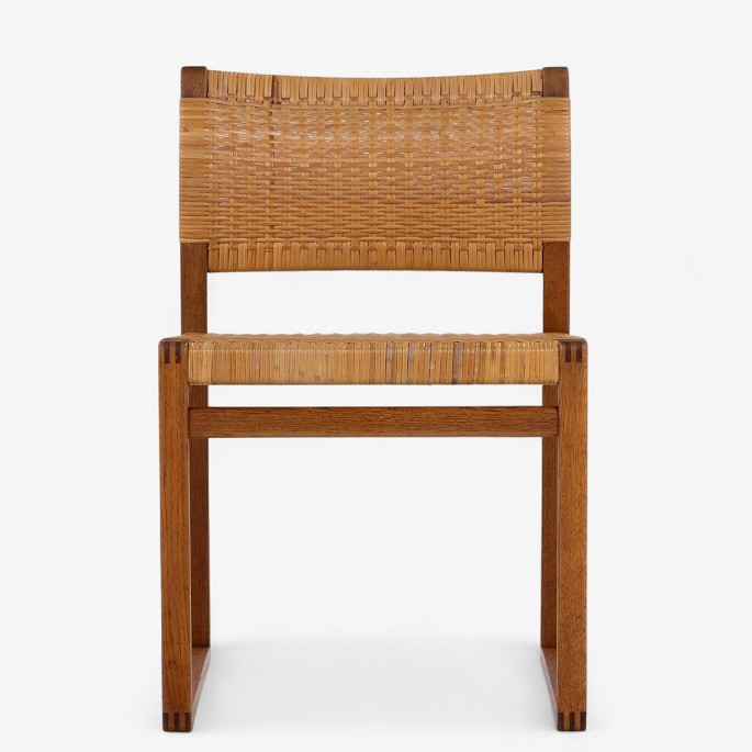 BM 61 - Sæt á 4 spisestole i eg og patineret sjeneflet.