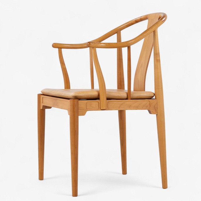 FH 4283 - Kinastol i kirsebær med hynde i patineret naturlæder. Mærket fra producent.